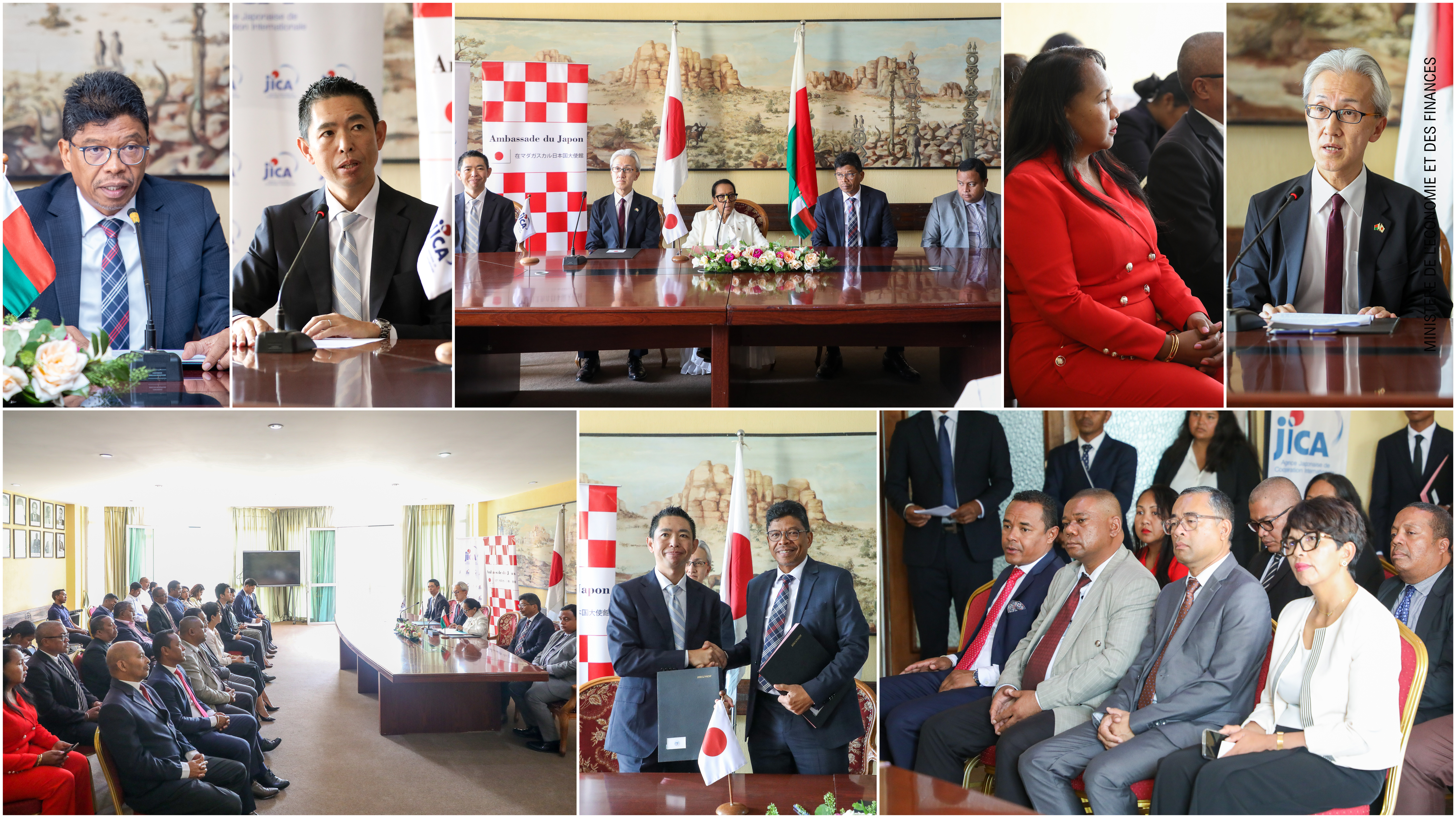 Une cérémonie de signature entre le Ministre de l'Économie et des Finances (MEF) et le Représentant Résident de la JICA pour acter l'Accord de Don non remboursable, d'un montant de 68 000 000 000 MGA. Ceci après l'Échange de Notes entre la Ministre des Affaires Étrangères et SEM l'Ambassadeur du Japon.