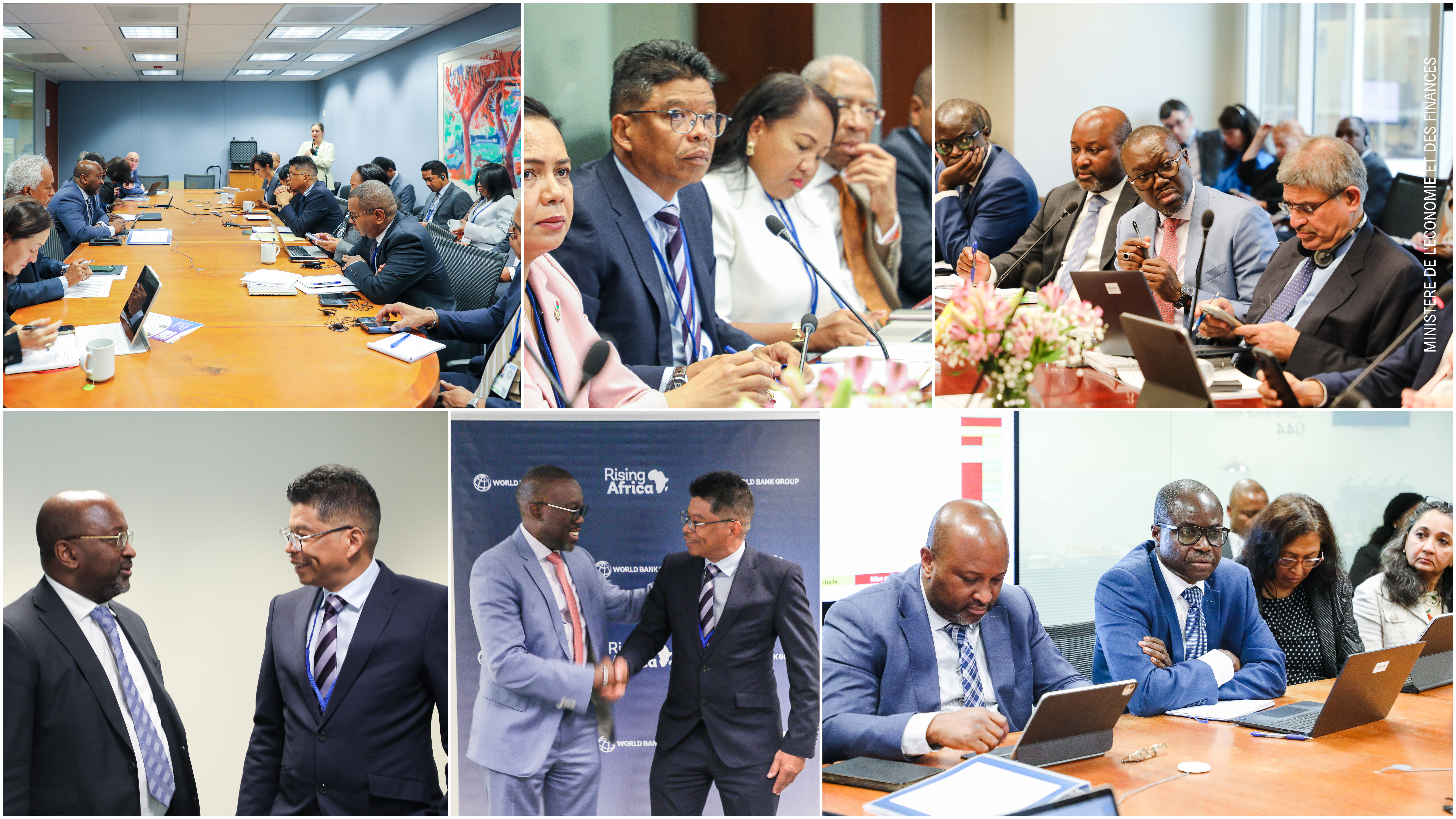 En marge des Spring Meetings à Washington, le ministre de l’Économie et des Finances, Dr Aimé RAMIARISON HERINJATOVO, a rencontré une délégation de la Banque Mondiale conduite par Dr Ndiamé Diop, vice-président régional pour l’Afrique orientale et australe, en présence de Fily Sissoko, directeur de division pour le Mozambique, Madagascar, Maurice, les Comores et les Seychelles, ainsi que de leurs équipes respectives. Cette rencontre a permis à la partie malgache de présenter le contexte économique national ainsi que la stratégie de transformation engagée par le Gouvernement. La Banque Mondiale a salué la pertinence de cette orientation, qui met l’accent sur les leviers structurels du développement, notamment les infrastructures, l’amélioration de l’environnement des affaires, le renforcement des compétences, l’accès au financement, ainsi que les secteurs de l’énergie et du transport.